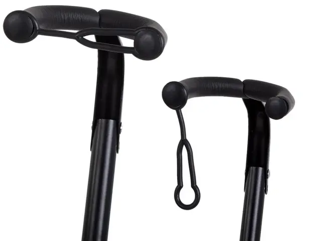 Nosilci so zaščiteni z gumo, tako da ne bodo opraskali ali poškodovali vaše opreme. Opora za vrat je opremljena z gumijastim zapiralom, tako da se kitara ne more nagniti naprej.
