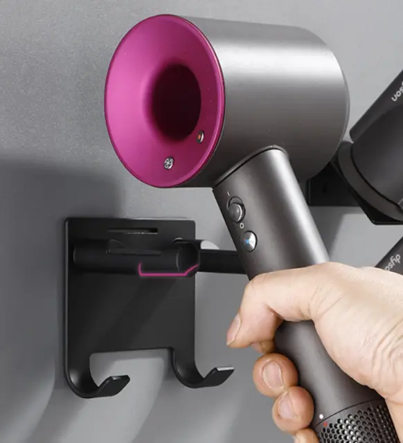 Stensko držalo v elegantnem in stilskem dizajnu, izdelano iz aluminija. Držalo je eleganten prostor za shranjevanje vašega sušilnika za lase in ga je enostavno namestiti na steno, brez vrtanja.