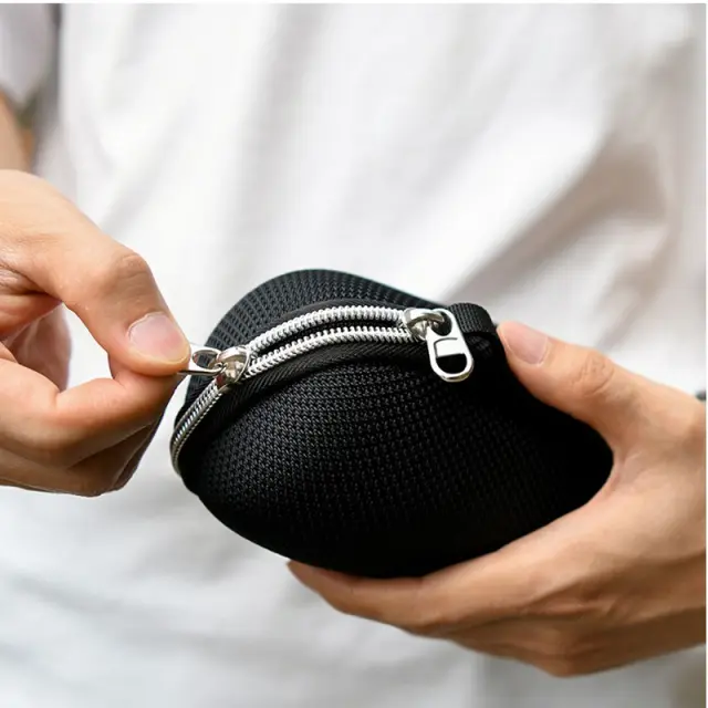 Uporabniku prijazna oblika: Srebrna kovinska dvojna zadrga omogoča enostaven dostop do vašega zvočnika, zaradi česar je hitro in priročno vstavljanje in odstranjevanje naprave. Gladko delovanje zadrge zagotavlja nemoteno delovanje, medtem ko trdna konstrukcija zagotavlja dolgotrajno delovanje. Dobro premišljena zasnova tega ohišja ga naredi prijetnega za uporabo, saj zagotavlja zaščito in udobje za vaš prenosni zvočnik. Združljivo s serijo JBL Flip, UE BOOM3, Beats Pill+ in Bose SoundLink Mini 1/2.