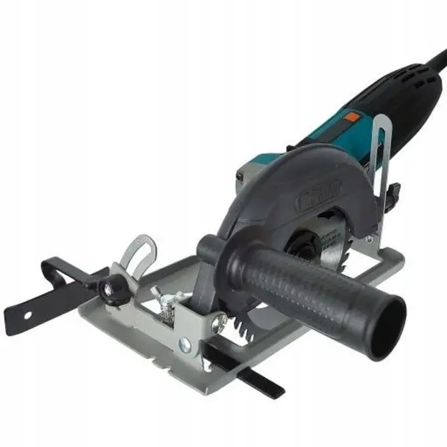 Dodatno je opremljen z ravnilom, ki omogoča natančno rezanje na določeni razdalji od roba.