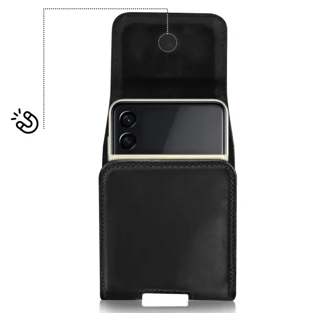 Univerzalno zložljivo usnjeno ohišje za pas telefona z magnetnim zapiranjem, Črna