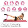 Pet različnih stopenj upora: Ta paket vsebuje pet vadbenih trakov, vsi z različnimi stopnjami upora. Trakovi so enake velikosti, vendar se njihova debelina razlikuje glede na stopnjo upora. Barva (od svetle do temne) predstavlja različne teže, ki označujejo intenzivnost upora.