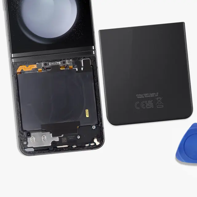 Originalno proizvajalčevo grafitno spodnje zadnje steklo za Samsung Galaxy Z Flip 5. Uradni kos, ki je popoln za popravilo vašega počenega, obrabljenega ali zlomljenega spodnjega zadnjega pokrova. 100 % original (servisni paket), preizkušen pri Samsungu za zagotavljanje brezhibnega zadnjega stekla. Enako kot vaš obrabljen (barva, velikost itd.).