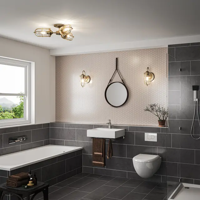 Urban Restoration Stenska svetilka Feiss z 1 lučjo, temna, antična medenina, IP44