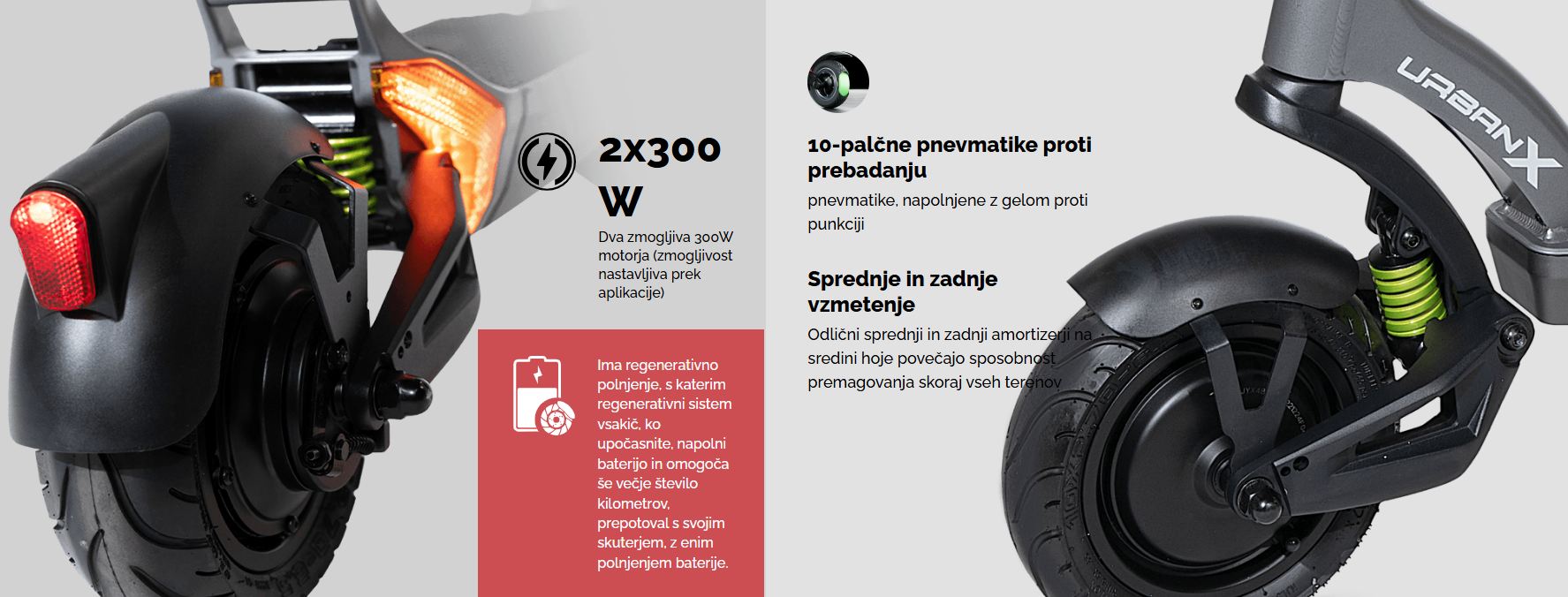 Ta eSkiro z dvema motorjema in skupno močjo 600 W zagotavlja močan navor, ki vas bo popeljal čez vsak teren! Brez skrbi, uživajte v vožnji navkreber, skozi parke ali po mestnih ulicah, ne glede na težo. S tem zanesljivim delovnim konjem pod vašimi nogami in udobnimi sprednjimi in zadnjimi amortizerji C-vilice ni ovire, ki je ne bi mogli premagati. Skiro ima spremenljivo zavoro in fantastično aplikacijo, ki vam omogoča, da prilagodite svoj slog vožnje z množico razpoložljivih nastavitev. Pametna baterija BMS zagotavlja inteligentno in učinkovito upravljanje energije, kar vam omogoča večji nadzor in daljši užitek v vožnji.