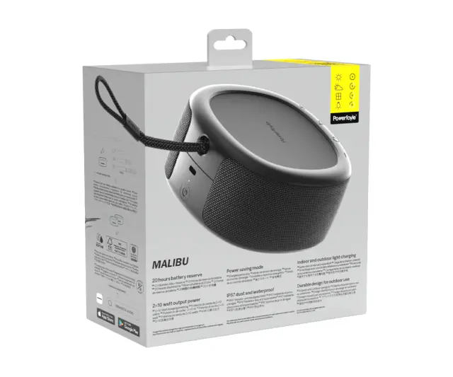 Prenosni SOLARNI zvočnik URBANISTA MALIBU, Bluetooth® 5.2, TWS/Stereo Link, IP67, USB-C, črn (Midnight Black)