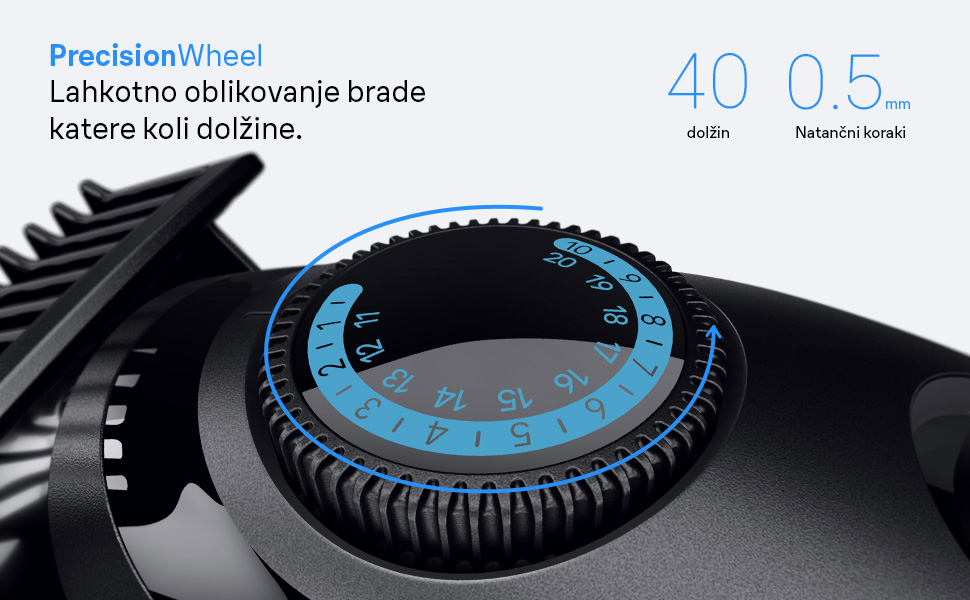 Odlični rezultati z vsakim potegom: izjemno ostro rezilo vam pomaga ujeti tudi težavne dlake in enakomerno ter učinkovito prirezati brado.