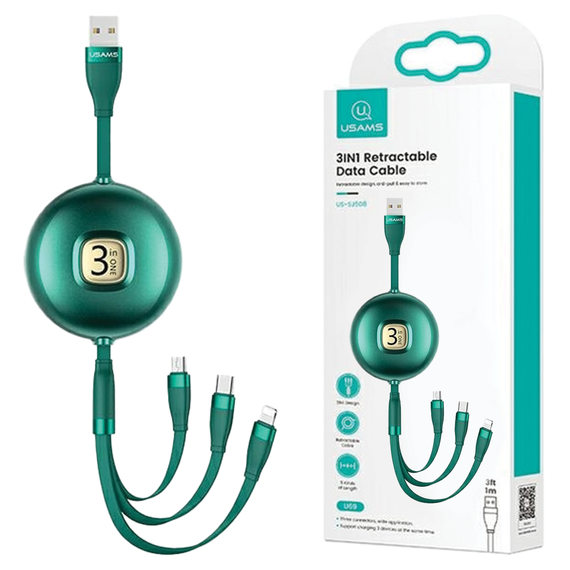 Investirajte v kabel, ki bo poskrbel za vaše naprave. Kabel USAMS 3-v-1 ponuja takojšnje polnjenje in zahvaljujoč trdni konstrukciji zagotavlja varnost in vzdržljivost. Ne glede na to, ali polnite pametni telefon, tablico ali druge naprave – lahko ste prepričani, da bo USAMS kos vsakemu izzivu. Zelena barva doda značaj, priročna dolžina 1 metra pa poskrbi za udobje uporabe.