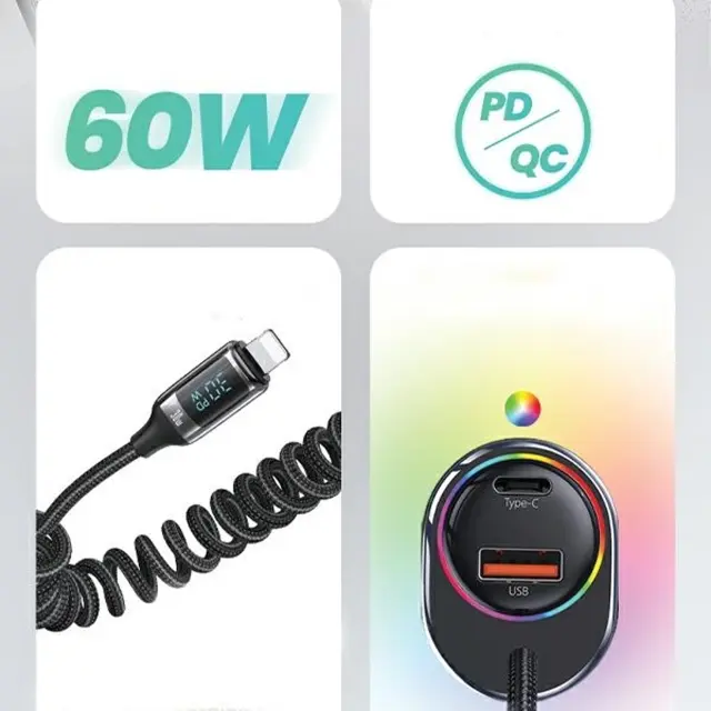 USAMS AVTOPOLNILEC 1XUSB 1XUSB-C 60W PD QC ZA IPHONE 11 12 13