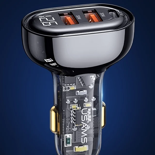 USAMS AVTOPOLNILEC 2XUSB 1XUSB-C 80W FAST CHARGE ČRN