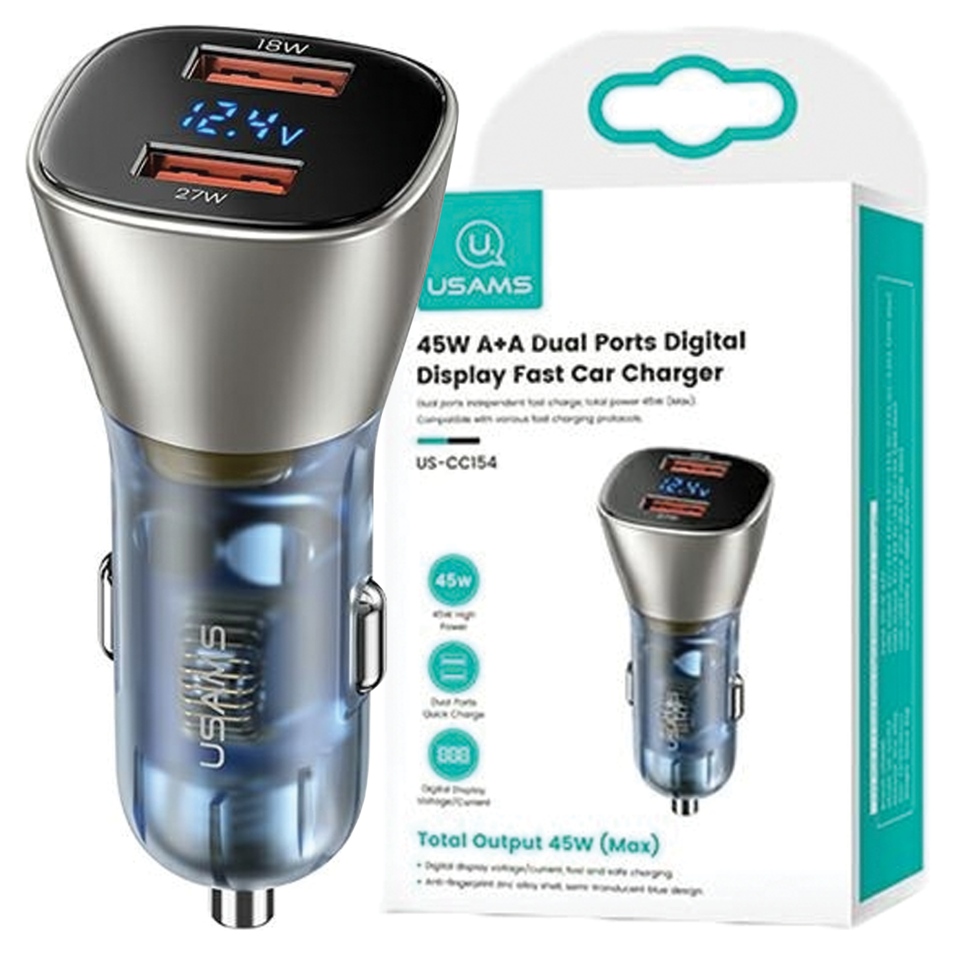 USAMS AVTOPOLNILEC 45W 2X USB-A HITRO POLNJENJE ZLAT