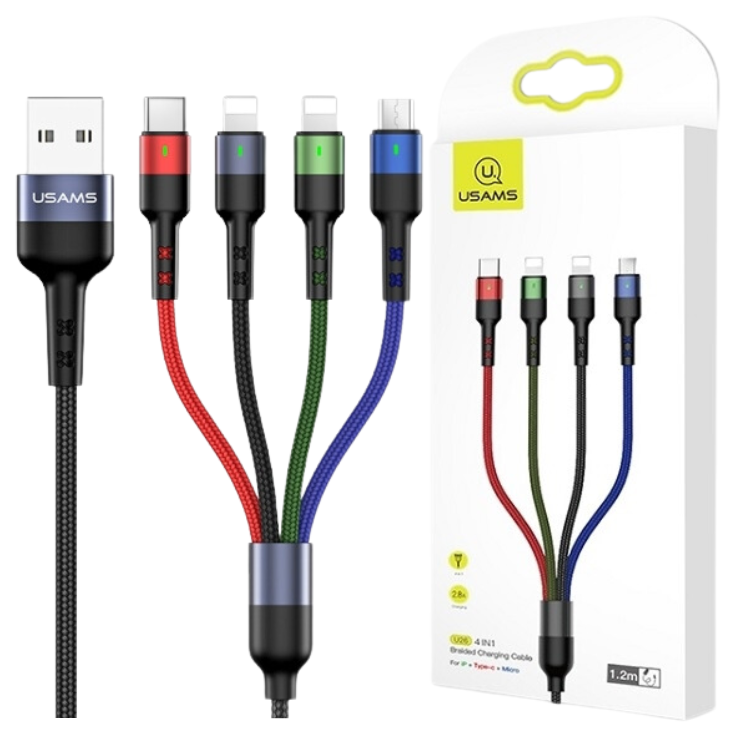Zahvaljujoč uporabi kar štirih vrst priključkov (2x Lightning, MicroUSB, USB-C) je kabel USAMS U26 odgovor na različne potrebe – ni vam več treba nositi več kablov s seboj. Preklapljajte naprave brez truda in uživajte v popolni združljivosti. Ne glede na to, ali ste ljubitelj Appla, Androida ali drugega sistema - ta kabel bo vedno pri roki, da bo zadovoljil vaše potrebe.
