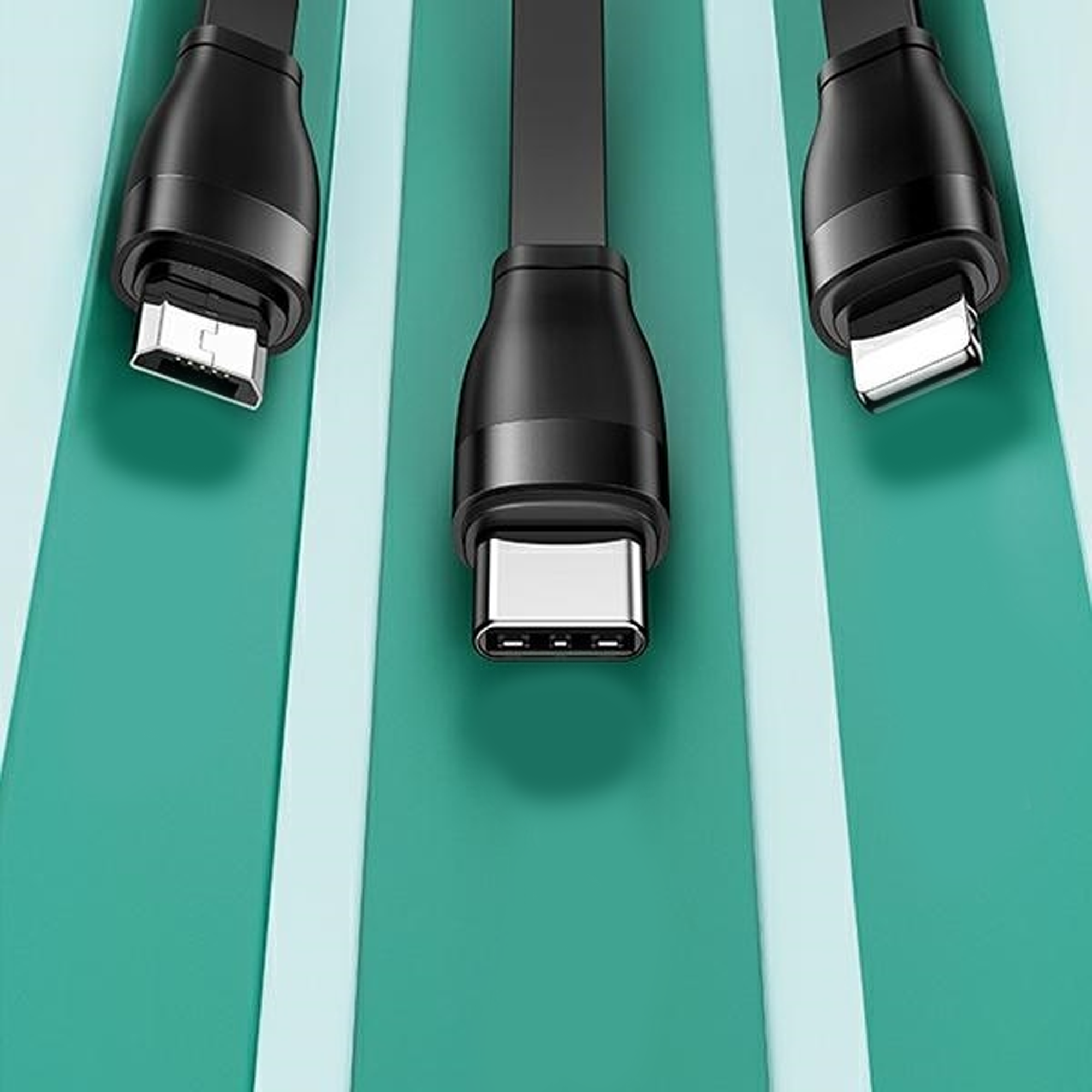 Ni vam več treba iskati popolnega kabla za povezavo vaših naprav. Kabel USAMS 3-v-1 izpolnjuje vse vaše potrebe. Lightning, microUSB in USB-C – en kabel, ki reši vsako težavo. Ne glede na to, ali ste v službi, na poti ali doma, ste z USAMS lahko prepričani, da bodo vaše naprave vedno pripravljene za delo. Ustvarjen za tiste, ki ne marajo kompromisov - ponuja hitro polnjenje, vzdržljivost in eleganten dizajn.