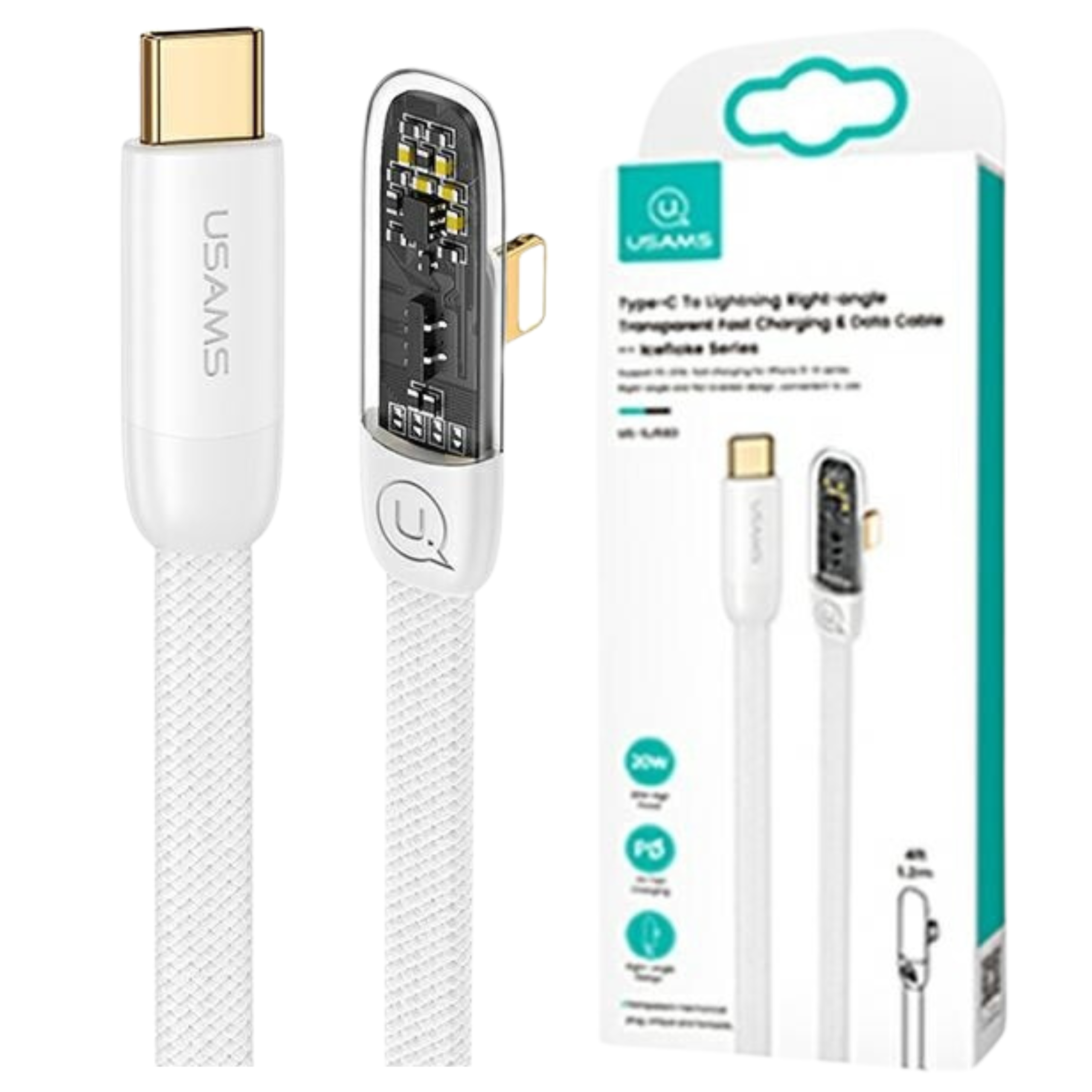 Predstavljajte si, da želite napolniti svoj iPhone, vendar je vaš kabel vedno na poti. S kablom USAMS pod pravim kotom USB-C do Lightning PD 20 W boste pozabili na frustracije zaradi obsežnih kablov. Zahvaljujoč inovativni kotni zasnovi se kabel popolnoma prilega vašemu telefonu in omogoča udobno uporabo tudi med polnjenjem. Eleganten bel dizajn serije Iceflake bo vašemu življenju dodal pridih modernosti, funkcija hitrega 20W polnjenja pa bo poskrbela, da bo vaša naprava takoj napolnjena. Izberite udobje in stil, ki si ga zaslužita!