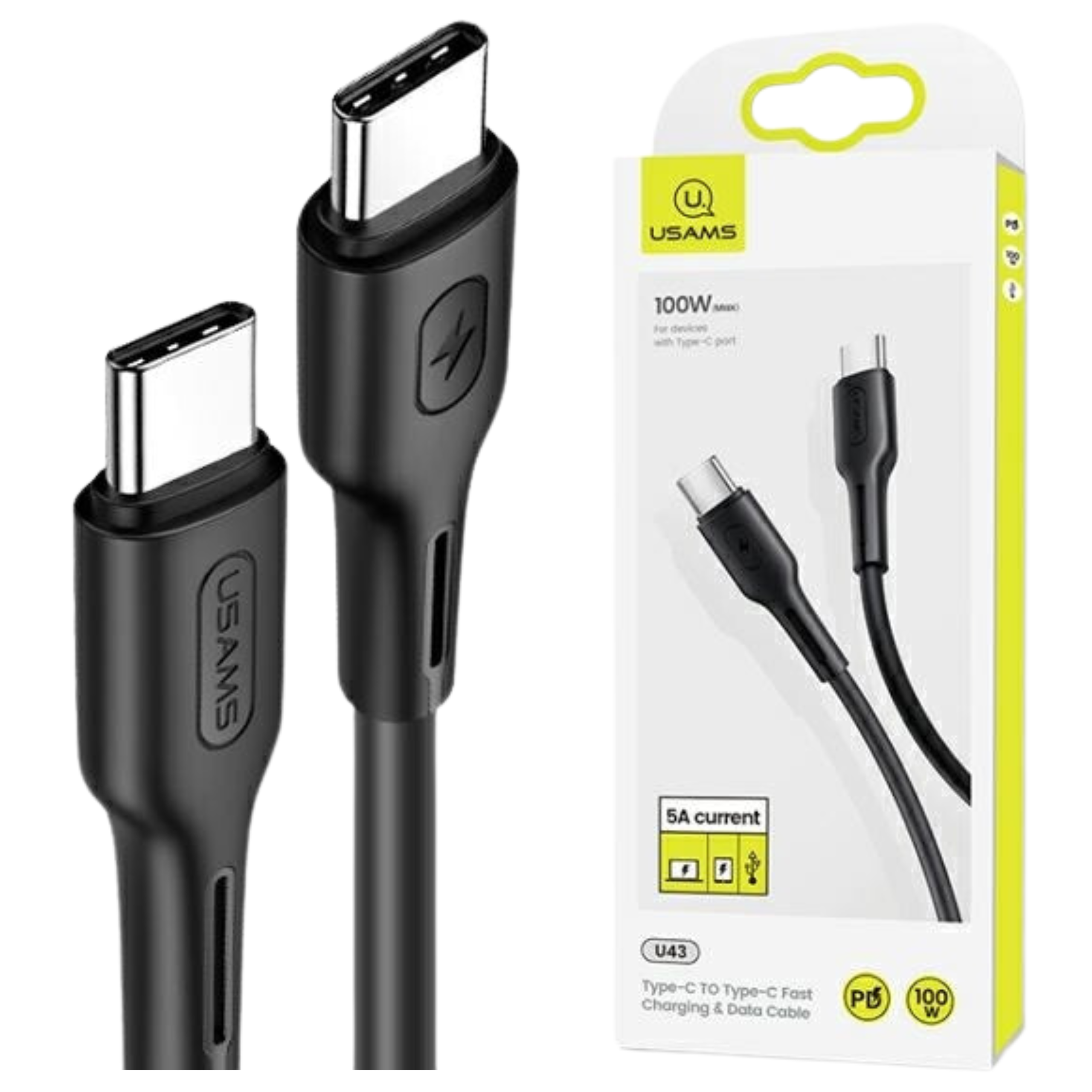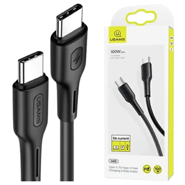 USAMS KABEL U43 USB-C NA USB-C 100W PD FAST CHARGE 5A 1.2M ČRN
