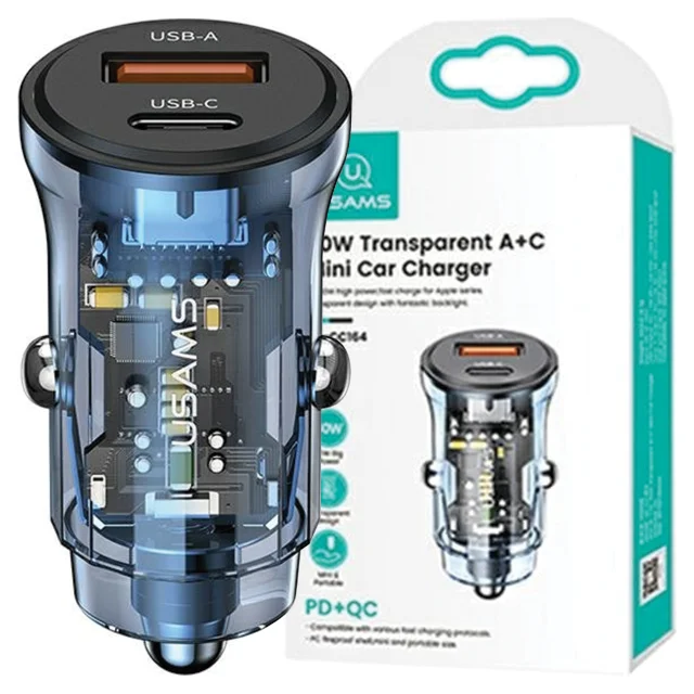 USAMS ŁAD. SAM. 1XUSB+1XUSB-C C32 30W FAST CHARGE NIEBIESKI/BLUE CC164CC02 (US-CC164)