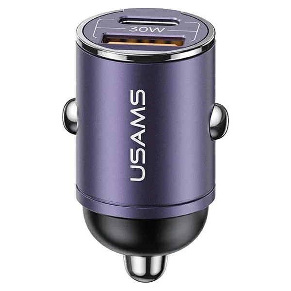 USAMS OMREŽNI POLNILEC 1XUSB 1XUSB-C 30W PD FAST CHARGE VIJOLIČEN