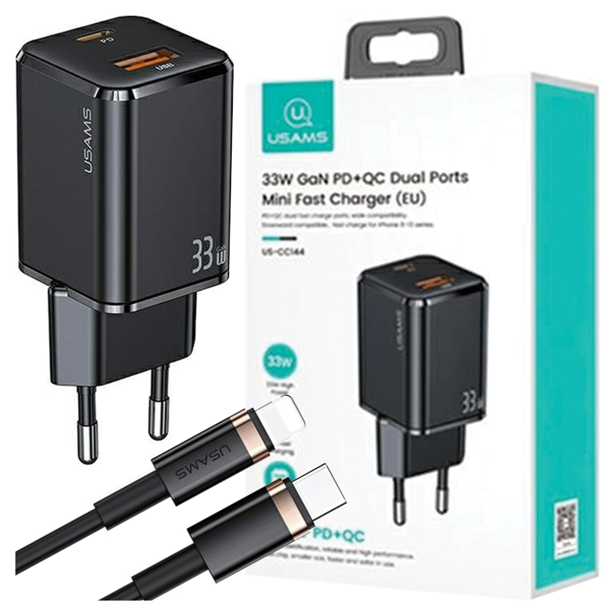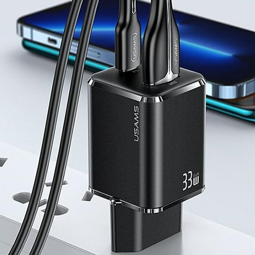Iščete nekaj, kar ne bo poskrbelo le za vaše naprave, ampak bo tudi poudarilo vaš stil? Polnilec USAMS 33W je kombinacija modernosti in funkcionalnosti. Črn polnilec z dvema priključkoma (USB-C in USB) je popolna rešitev, ki bo v hipu napolnila do dve napravi. Polnite svoj iPhone s kablom USB-C v Lightning in poskrbite, da boste vedno napolnjeni – hitro in varno.