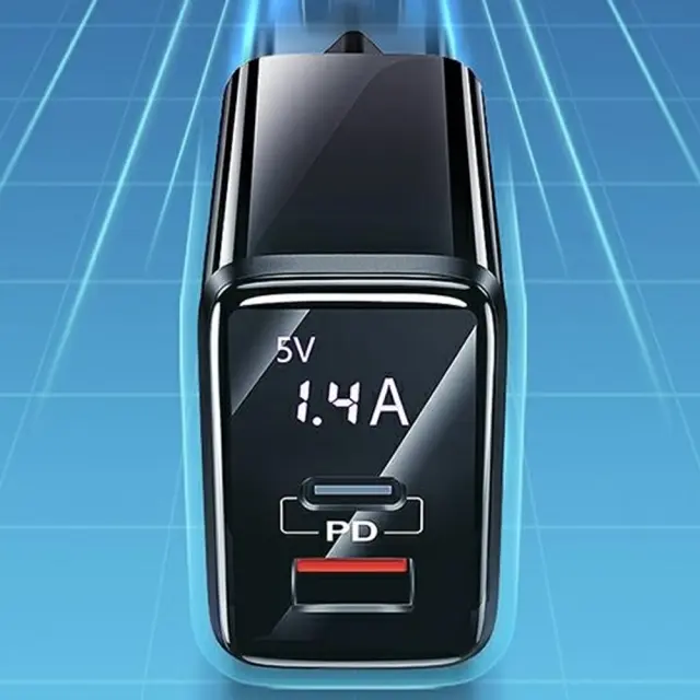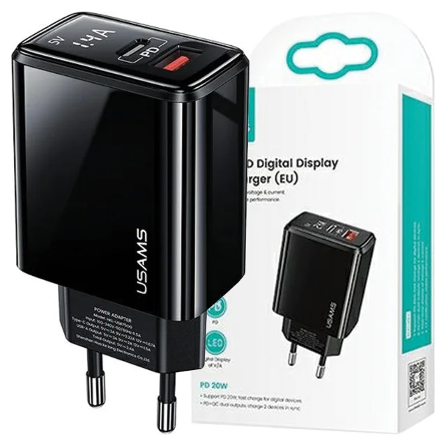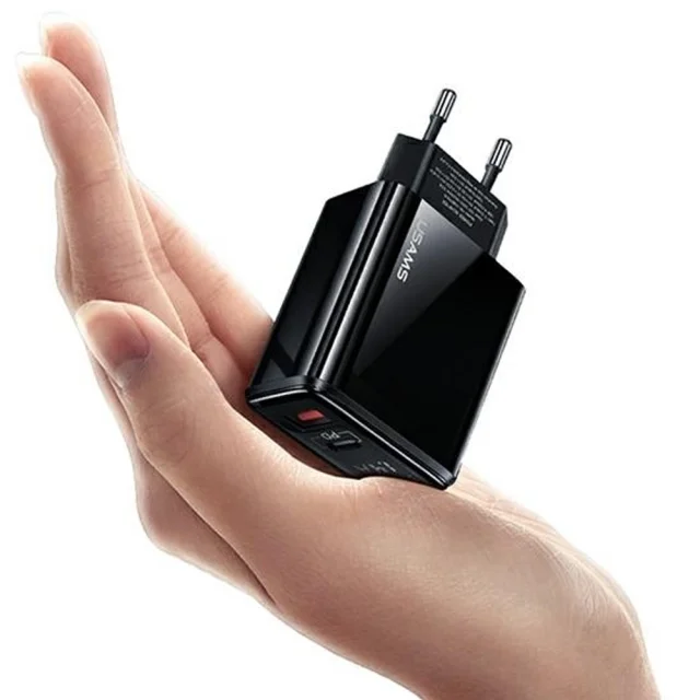 USAMS OMREŽNI POLNILEC 1XUSB-C 1XUSB PD3.0 QC3.0 20W ZA TELEFON ČRN