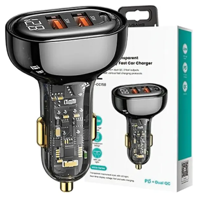USAMS OMREŽNI POLNILEC 2XUSB+1XUSB-C 125W ZA TELEFONE ČRN