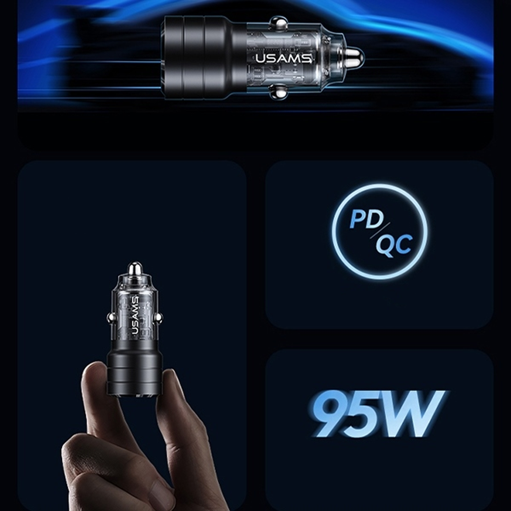 Polnilnik USAMS C36 je združljiv z napravami, ki podpirajo USB in USB-C. Zahvaljujoč 95 W hitremu polnjenju lahko z njim polnite telefone, tablice in druge elektronske naprave, ki podpirajo to tehnologijo.