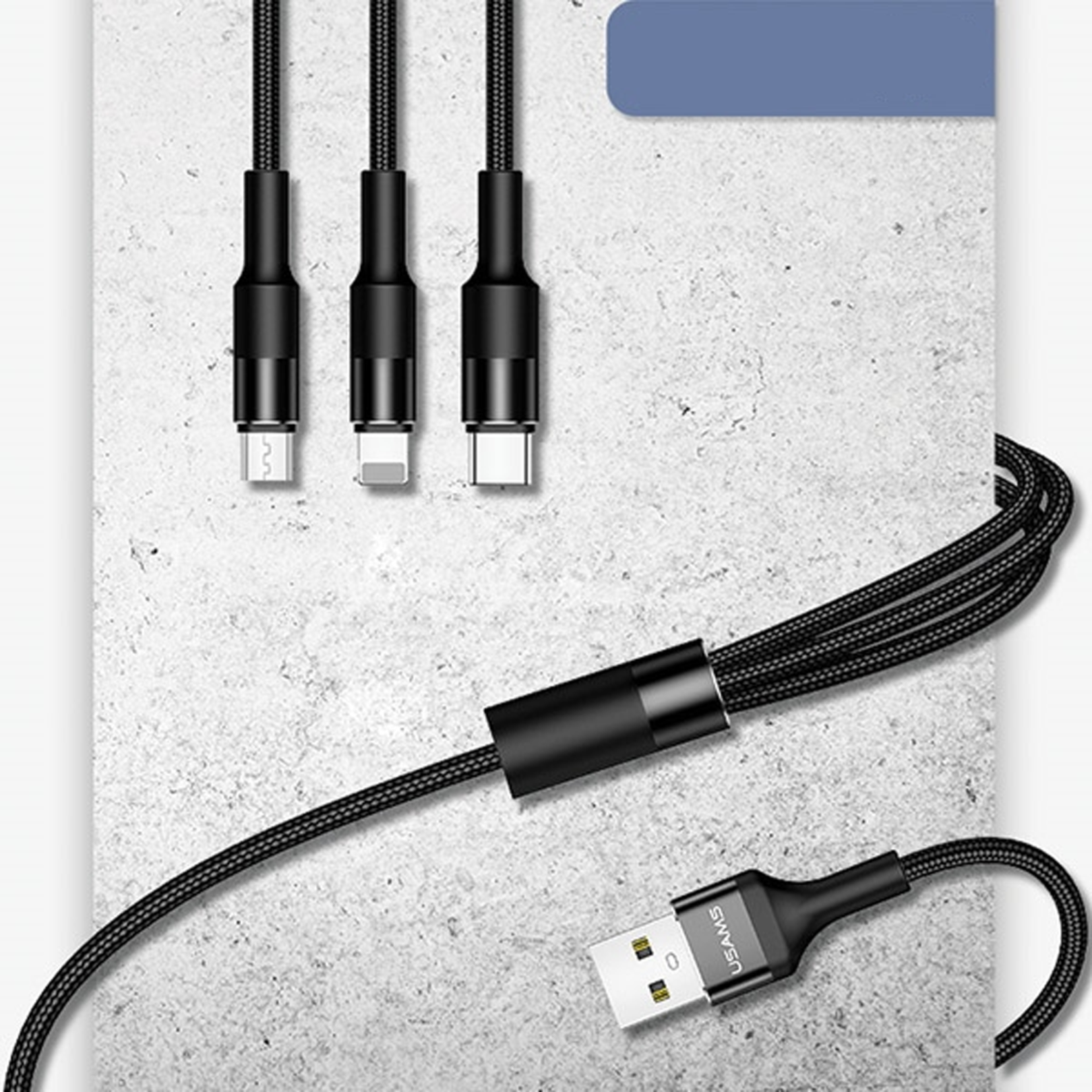Ko gresta videz in funkcionalnost z roko v roki, dobite kabel USAMS U5 3-v-1. Elegantna črna tkana površina ne le pritegne pozornost, ampak je tudi trpežna in odporna na poškodbe. To je kabel, ki vas ne bo nikoli pustil na cedilu, zahvaljujoč trdnim priključkom Lightning, microUSB in USB-C. Ne glede na napravo, ki jo uporabljate, je ta kabel jamstvo za hitro polnjenje in zanesljivost. Prihranite čas z uporabo enega kabla za tri različne naprave.