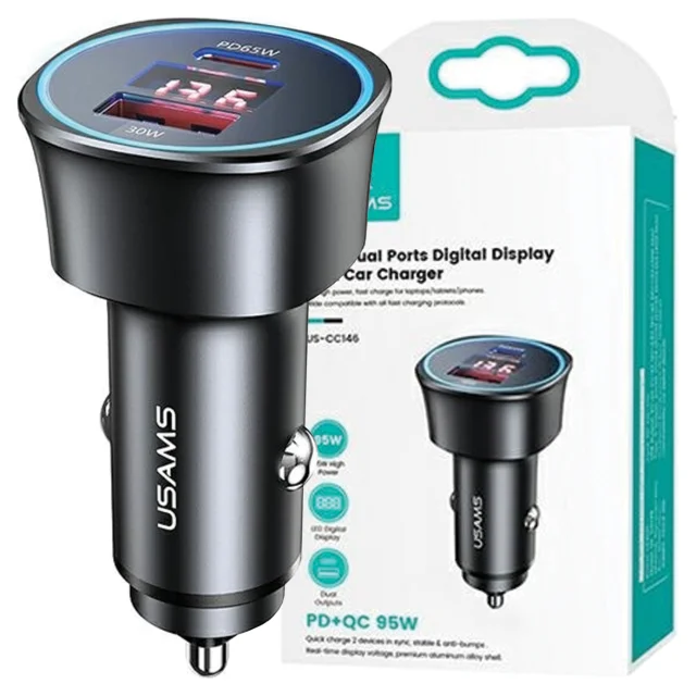 USAMS POLNILEC 1XUSB 1XUSB-C C26 95W FAST CHARGE ČRN