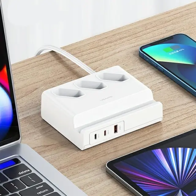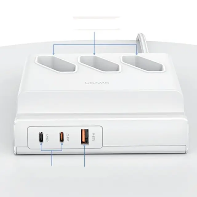 USAMS POWER STRIP 65W USB PODALJŠEK POLNILNA VTIČNICA BELA