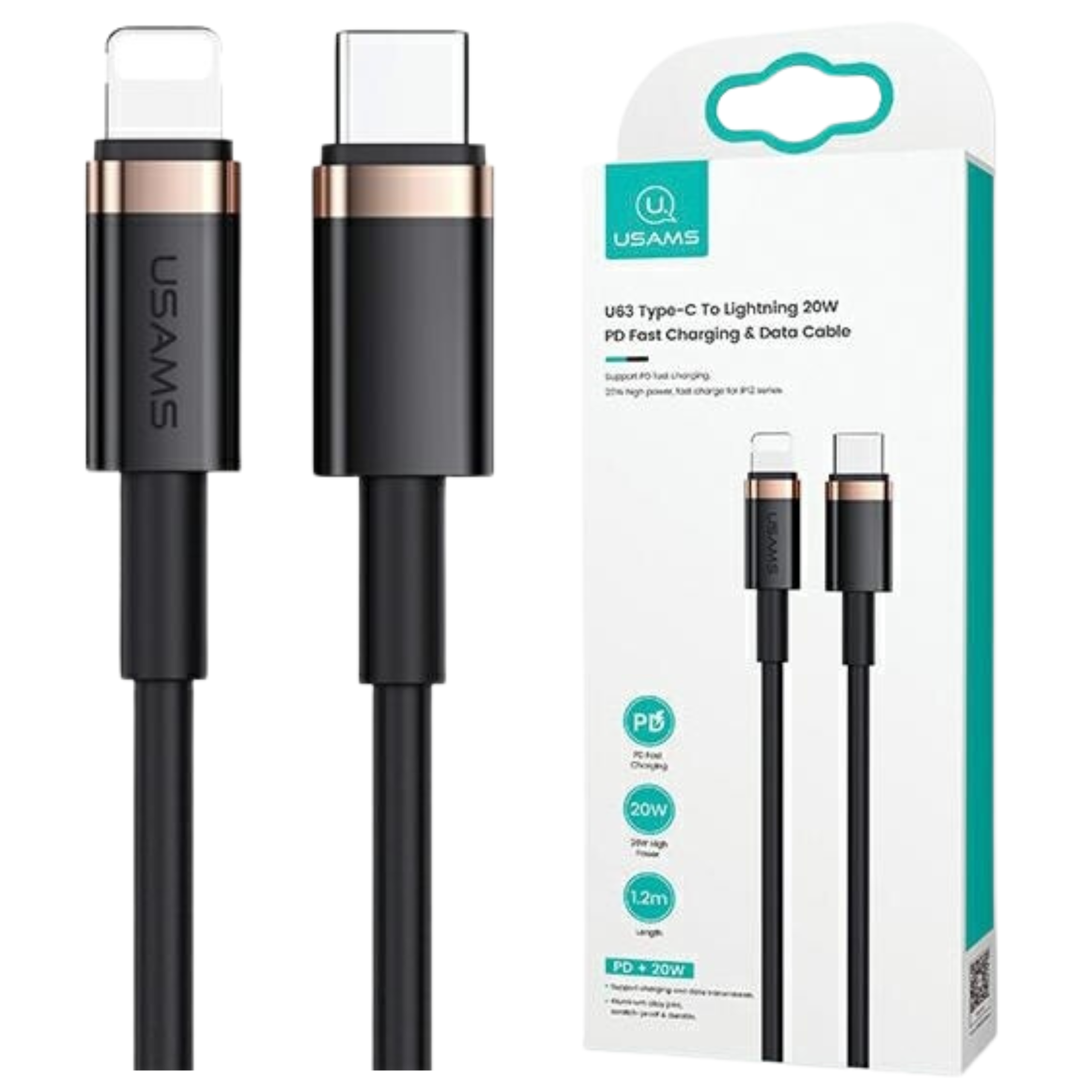USAMS U63 KABEL USB-C ZA LIGHTNING 1.2M 20W PD HITRO POLNJENJE ZA IPHONE ČRN