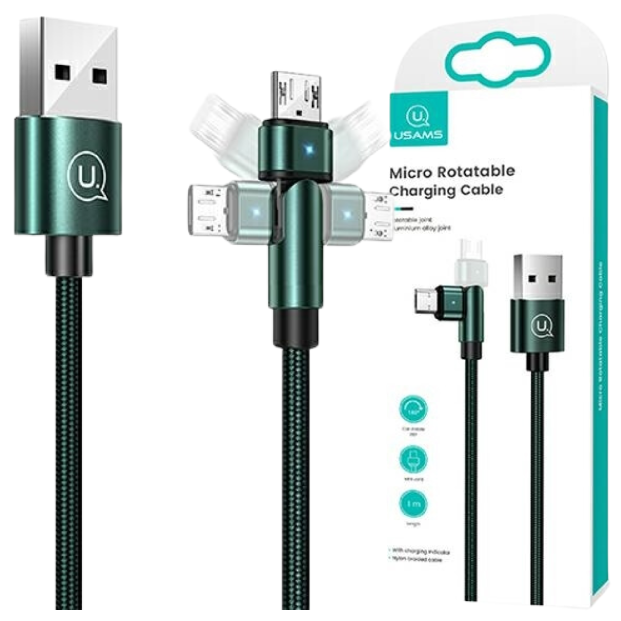 Predstavljajte si situacijo: potujete, vaš telefon se začne prazniti, vi pa nimate časa iskati pravega kabla. Na pomoč priskoči kabel Usams U60 - zahvaljujoč vrtljivemu konektorju in pletenemu materialu je vedno pripravljen na akcijo. Samo en hiter gib je dovolj, da ga povežete v kateremkoli položaju. Zelena barva mu daje značaj, njegova 1-metrska dolžina pa pomeni, da ga lahko vzamete kamor koli - od mize do nahrbtnika ali avtomobila. Ne glede na okoliščine je kabel U60 zanesljiva izbira, ki bo delovala kadar koli.