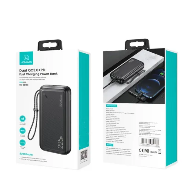Lepo oblikovana, ultra majhna baterija s kapaciteto 20.000 mAh. Z njo lahko napolnete vse naprave v vsaki situaciji. Z baterijo lahko polnete kar 3 naprave naenkrat. Batrija ima 2x izhod USB in 1x ihod Type-C.