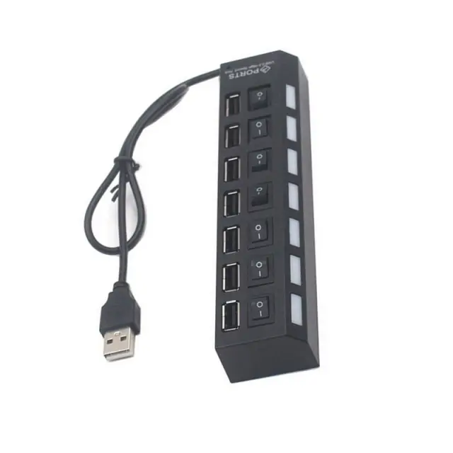 Razširjena povezljivost: Ta USB 2.0 7-Port Hub takoj razširi povezljivost vaše naprave z dodajanjem sedmih USB 2.0 priključkov. Povežite več naprav, kot so miške, tipkovnice, USB pogoni in drugo hkrati. Idealen za prenosnike in namizne računalnike, ki potrebujejo dodatne priključke. Hiter prenos podatkov zagotavlja učinkovito izmenjavo datotek in delovanje naprave. Ta hub je kot nalašč za uporabnike, ki morajo hkrati povezati več perifernih naprav, kar poenostavlja njihov potek dela in povečuje produktivnost. Podpira različne operacijske sisteme, zaradi česar je vsestranski dodatek k vsaki postavitvi. Kompaktna oblika zagotavlja, da ne zavzame preveč prostora na vaši mizi.