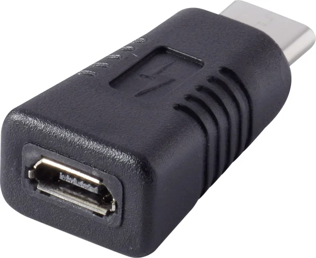 USB 2.0 adapter [1x USB-C™ vtič - 1x USB 2.0 vtičnica Micro-B] črne barve s pozlačenimi vtičnimi kontakti renkforce