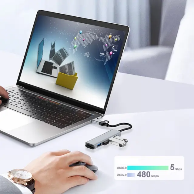 Učinkovito odvajanje toplote: Izdelan iz vrhunskega materiala iz zlitine, je naš USB 3.0 hub zasnovan za učinkovito odvajanje toplote, preprečuje pregrevanje in zagotavlja stabilno delovanje tudi med dolgotrajno uporabo. Robustna konstrukcija ne samo da poveča življenjsko dobo huba, temveč zagotavlja tudi elegantno in profesionalno estetiko. Ta funkcija je še posebej koristna za uporabnike, ki pogosto sodelujejo pri intenzivnem prenosu podatkov ali upravljajo več naprav hkrati, kar zagotavlja dosledno in zanesljivo delovanje. Združljiv z napravami APPLE, Samsung, Huawei in drugimi.