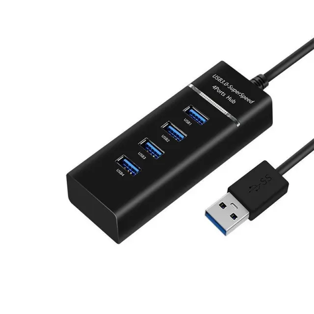 Razširjena povezljivost: Ta USB 3.0 hub takoj razširi povezljivost vaše naprave z dodajanjem štirih USB 3.0 priključkov. Povežite več perifernih naprav, kot so miške, tipkovnice, USB pogoni in drugo, na vaš prenosnik ali namizni računalnik. 1,5-metrski kabel zagotavlja prilagodljivost pri postavitvi, zaradi česar je idealen za domače in pisarniške nastavitve. Izkusite brezhibno večopravilnost in izboljšano produktivnost s tem bistvenim pripomočkom. Je združljiv z različnimi napravami, kar zagotavlja široko uporabnost.