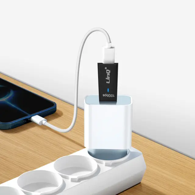 Adapter LinQ USB 3.1 v USB-C za pretvorbo klasicnih vrat USB v novejša vrata USB-C. Ponuja hitrost prenosa 10 Gbps, podpira hitro polnjenje in podpira zvok. Zasnovan iz cinkove zlitine in v kompaktnem formatu.
