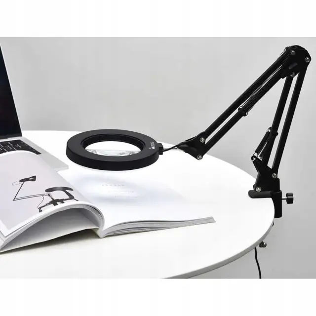 USB 32 LED gibljiva okrogla namizna svetilka črna + povečevalna lupa