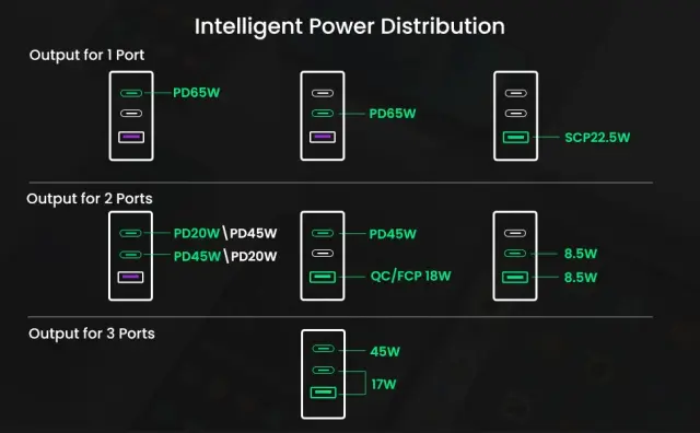 UGREEN USB-A in 2x USB-C 65W GaN hitri polnilec