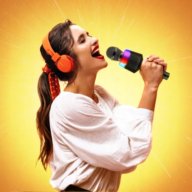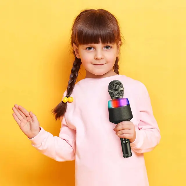 Ta večnamenski mikrofon je popolna rešitev za vse ljubitelje petja, ki si želijo uživati v svojih najljubših pesmih kjerkoli in kadarkoli. Z zmogljivo baterijo kapacitete 1200mAh in brezžično Bluetooth povezavo vam omogoča več ur neprekinjenega delovanja in preprost prenos pesmi z različnih naprav, kot so telefoni, tablice ali računalniki.Vgrajen visokokakovostni zvočnik zagotavlja jasno in močno reprodukcijo zvoka, medtem ko elegantna RGB LED osvetlitev poskrbi za pravo karaoke vzdušje na vsaki zabavi. Mikrofon podpira tudi SD kartice, kar pomeni, da lahko predvajate pesmi neposredno iz svoje kartice, ne da bi potrebovali dodatno napravo. Preprosto ga napolnite prek USB kabla in uživajte v brezskrbni uporabi kjerkoli.Bluetooth povezava: Preprosto povežite mikrofon z vašim telefonom, tablico ali računalnikom in predvajajte pesmi brezžično.1200mAh polnilna baterija: Zmogljiva baterija omogoča dolge ure neprekinjenega delovanja.Vgrajen zvočnik: Kakovosten zvočnik zagotavlja odličen zvok brez dodatnih naprav.RGB LED osvetlitev: Ustvarite popolno zabavno vzdušje s spreminjajočo se barvno osvetlitvijo.Podpora za SD kartice: Predvajajte glasbo neposredno iz SD kartice brez potrebe po drugih napravah.Prenosen in lahek: Idealen za uporabo doma, na zabavah, v naravi ali med potovanjem.Enostavno polnjenje prek USB: Priloženi USB kabel omogoča hitro in enostavno polnjenje.S tem Bluetooth karaoke mikrofonom lahko postanete zvezda vsake zabave, kjerkoli se nahajate. Njegova vsestranskost, zmogljivost in zabavne funkcije poskrbijo za nepozabno izkušnjo petja in zabave.Bluetooth zvočnik, vgrajen v naš mikrofon, vam bo omogočil povezavo s telefonom in predvajanje vaše najljubše glasbe.Visoka kakovost zvoka – zvok ima funkcijo zmanjševanja hrupa, zato je zvok zvenel izjemno čisto, lahko pa je prilagoditi tudi glasbo v ozadju, kakovost nizka v visokih tonov.Zasnova mikrofon ima za župana drugačno idejo.Mikrofon ima možnost utišanja vokalov v glasbi v ozadju. Samo pritisnite en gumb in naprava bo dejansko izvedla celoten postopek!! – Zahvaljujoč tem možnostm nam ni treba predvajati posebnih karaok različic naših najljubših pesmi!Oglejte si druge razpoložljive barve mikronov naših dražbah!Naprava ima vgrajen zvok , ki omogoča odlično ojačitev glasu. Vgrajena baterija omogoča večurno delovanje naprave brez priključka na napajanje.Z zmanjšanjem skupine , ker je vaš glas zvenel čist in brez popačenj, nastavitve nizkih, visokih tonov in odjeka pa bodo vaše petje popeljale v novo dimenzijo.Napravo je mogoče povezati s telefonom prek Bluetootha in snemati glas – idealno kot orodje za intervjuje, dodaten snemalnik zvoka pri snemanju videa, za radijske poddę ali prenos v živo.Naš mikrofon je opremljen z najboljšimi aplikacijami za karaoke! Vrzite se v glasbeno norijo in zapojte!Brezžični mikrofon s FUNKCIJO BLUETOOTH omogoča jasno povezavo s telefonom, tablico in SMART TV z operacijskima sistemoma Android in IOS.Mikrofon hkrati predvaja glasbo in nanjo prekriva naše petje. Popoln za petje na potovanjih, v avtu, snemanje instrumentov, intervjuje in druge dogodke v živo.Multifunkcijski gumbi vam omogočajo prilagajanje glasnosti mikrofona in zvoka, vklop funkcije odmeva, preklapljanje med pesmimi na telefonu in snemanje vašega glasu!Mikrofon lahko preko BLUETOOTH je primeren za telefone, tablice in SMART TV z operacijskim sistemom ANDROID in IOS.Čas je za gledanje karaok na telefonu, tabli ali TV zavesi.Mikrofon daje LED party osvetlitev, ki bo ustvarila edinstveno vzdušje med vašo karaoke zabavo!Karaoke mikrofon je večnamenska naprava – lahko deluje tudi z zvočnikom BLUETOOTH za predvajanje glasbe.Možnost snemanja vašega petja vam omogoča, da priredite svoje najljubše pesmi.Vključite svojo najljubšo glasbo s kartico TF in zapojte z vašimi najljubšimi izvajalci.Ko vstavite pomnilniško kartico v napravo, lahko posnamete celoten zvok in ga predvajate! Ujemite svoje neverjetne izvedbe svojih najljubših pesmi!Frekvenčni razpon: 100 Hz-20 kHzČas igranja: 6-8 rojČas polnjenja: 2 uriMoč: 3WKapaciteta baterije: 1200MAHIzhodna moč: DC5VBarva: črna