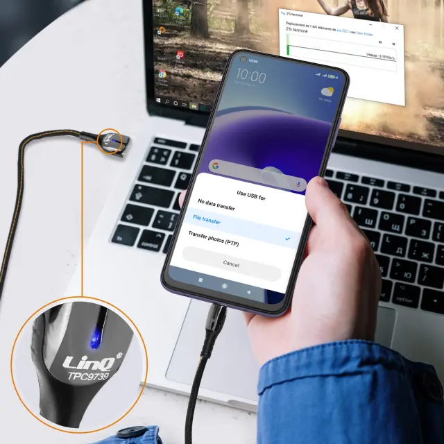 Kabel LinQ USB v USB-C. Omogoca polnjenje vaše naprave ali prenos datotek tako, da jo povežete z racunalnikom. Kabel USB-C z jakostjo 5A. Ima svetlobni indikator napolnjenosti. Dolžina 1,2m.