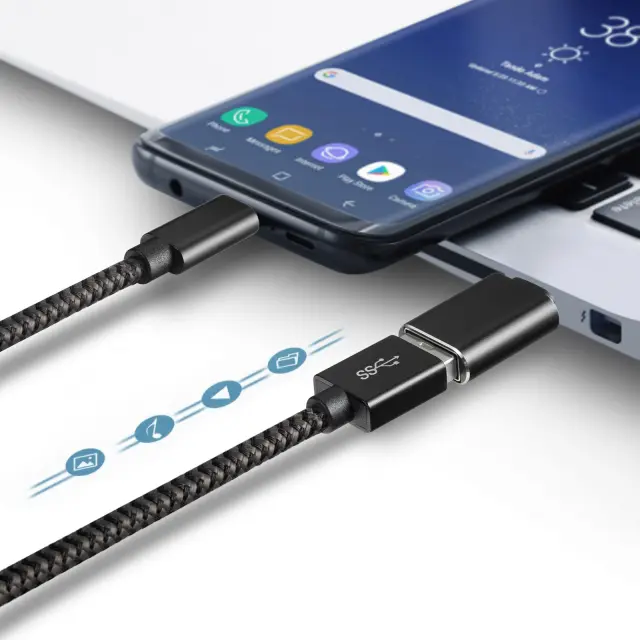 S tem majhnim adapterjem USB lahko polnilnik ali računalnik spremenite v napravo USB-C. Adapter ponuja hiter in stabilen prenos podatkov med povezanimi napravami in podpira tudi polnjenje. Je varen in enostaven za uporabo.