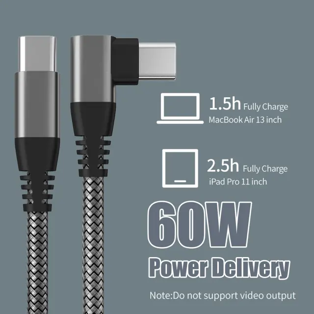 USB-C kabel, ki podpira hitro polnjenje z do 60 W visoke moči. Zagotavlja dodatno udobno uporabo zahvaljujoč nagnjenemu stiku in najlonski ovojnici, ki se ne zapleta.
