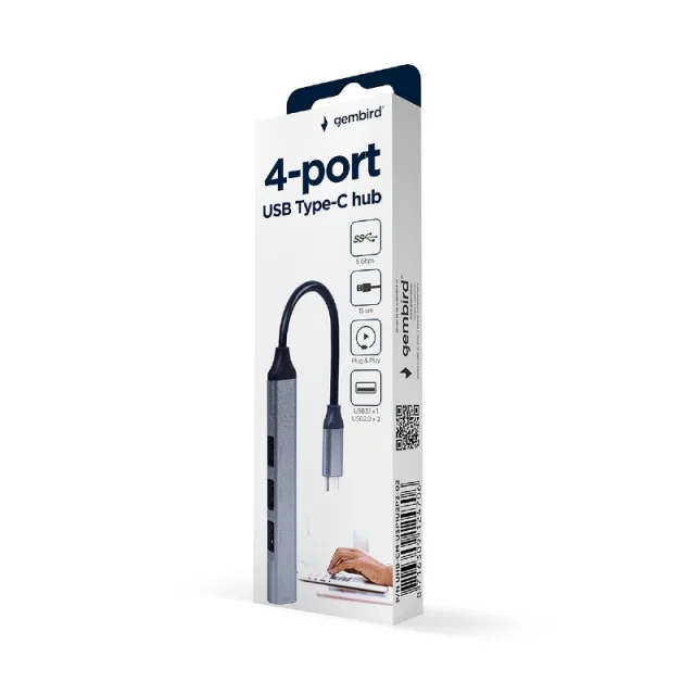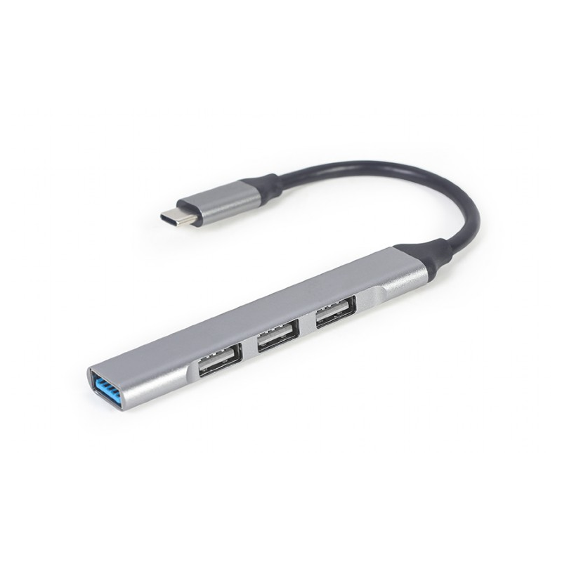 USB-C 4-vratni USB hub (USB 3.1 x 1, USB 2.0 x 3), srebrne barve z integriranim kablom dolžine 13cm.