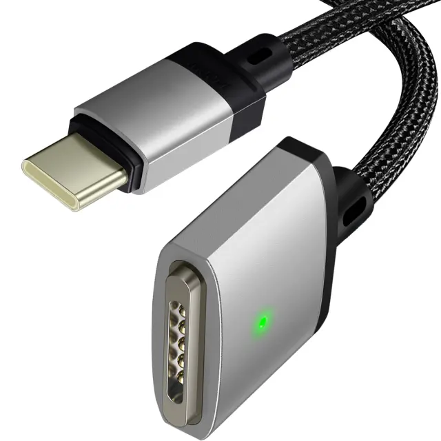 Kabel USB-C na MagSafe 3 za MacBook. Uživajte v samodejni magnetni povezavi z mocnim polnjenjem do 140 W. Izjemna odpornost, zasnovana je iz aluminijeve zlitine in pletene najlonske žice dolžine 2 metra.