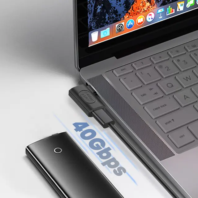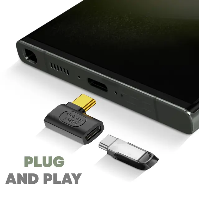 Poenostavite svoje povezave USB-C s tem ukrivljenim moškim in ženskim adapterjem USB C ob strani. 240 W hitrega polnjenja, 40 Gbps prenosa, 8K za video/zvok, vse v kompaktni in trpežni zasnovi za elegantno povezljivost na poti.