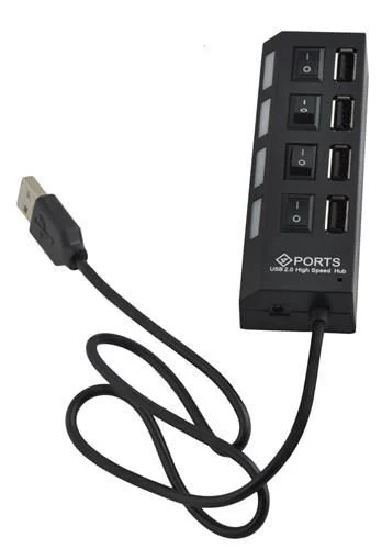USB HUB razdelilec 2.0 4 vrata 480 Mbps 45cm črn
