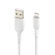 Združite kakovost in učinkovitost s hitrim in dolgotrajnim polnjenjem, zagotovljenim s tem Belkinovim najlonskim kablom USB v Lightning. Uživajte v znanju in izkušnjah kalifornijske blagovne znamke Belkin, specialista za visokotehnološke vrhunske izdelke. Popolnoma združljiv z vašim iPhoneom ali iPadom. Opremljen s pletenim, ojačanim najlonskim ohišjem, ki ščiti pred kakršnim koli obrabljenjem ali notranjimi poškodbami.