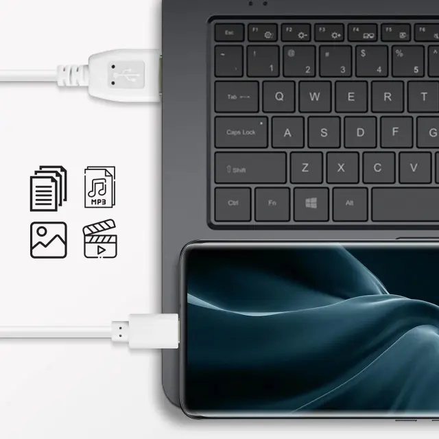 Polnilni in sinhronizacijski kabel. Vhodni priključek USB na priključek USB tipa C. Omogoča ponovno polnjenje naprave in/ali sinhronizacijo njenih podatkov z računalnikom. Združljiv z vsemi napravami, opremljenimi z vrati USB tipa C.