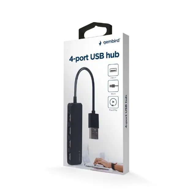 4-vratni USB 2.0 hub z integriranim kablom, dolžine 30 cm.