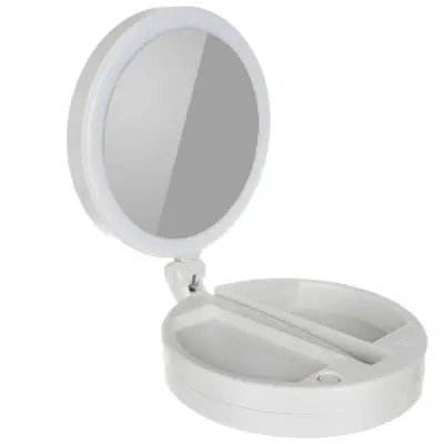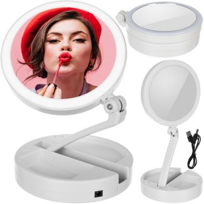 PRENOSNO – Ogledalo z LED osvetlitvijo se lahko popolnoma zloži in zavzame malo prostora . Napajajo ga baterije – postavite jih lahko kamor koli želite, ne da bi skrbeli za vir napajanja ali uporabo kabla, ki je priložen v kompletu – izbira je vaša. Deloval bo tako doma, v kozmetičnem salonu kot na potovanju. Zaradi dizajnerskega videza in polne funkcionalnosti je popolna ideja za darilo.